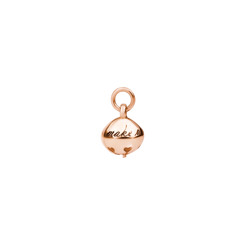 DMC0013-BLSNW-0009R Un grelot Dodo en or rose 9ct, motif dessous flocon de neige avec inscription Make a wish.