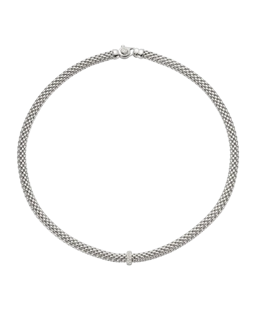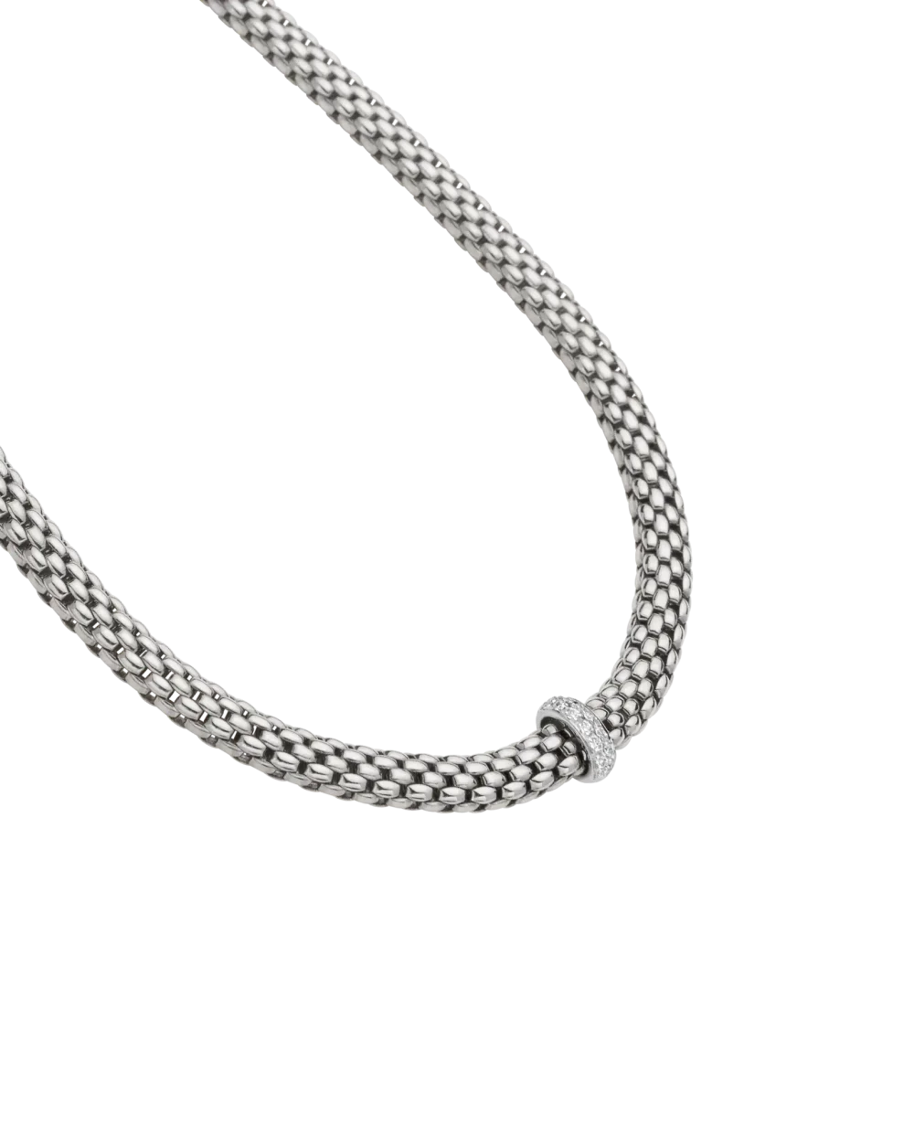 Un collier de la marque Fope en or gris 750, collection Flex'it Vendome, un anneau serti de brillants 0.10ct, longueur 43cm.