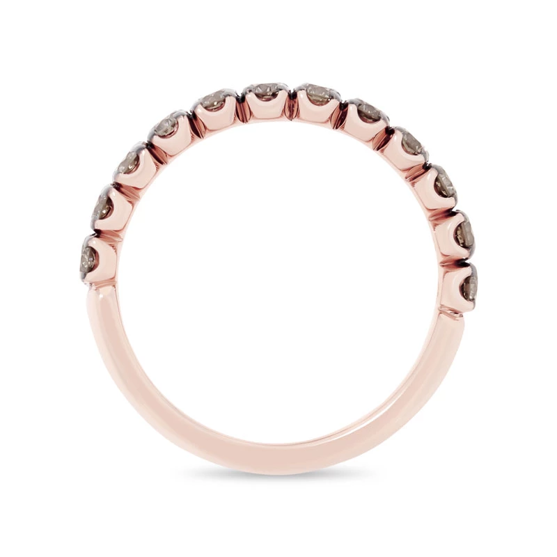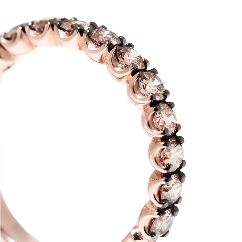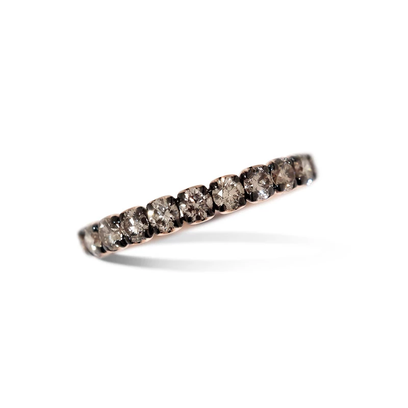 Une bague en or rose 750 serti de 12 diamants bruns 0.90ct , décor avec du rhodium noir, taille 52.5